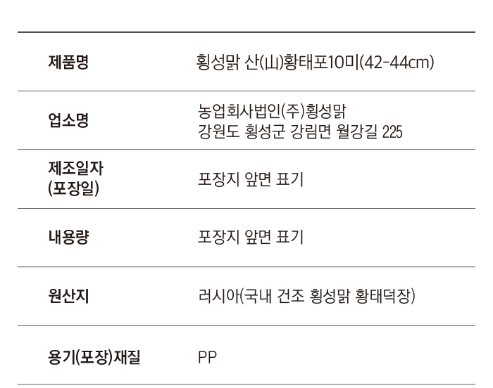 횡성맑 황태는 가장 까다롭게 엄선한 프리미엄 제품입니다.