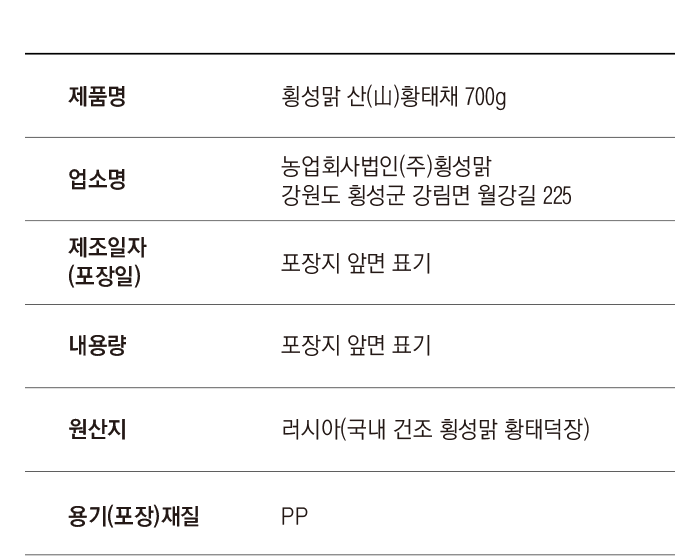 횡성맑 황태는 가장 까다롭게 엄선한 프리미엄 제품입니다.