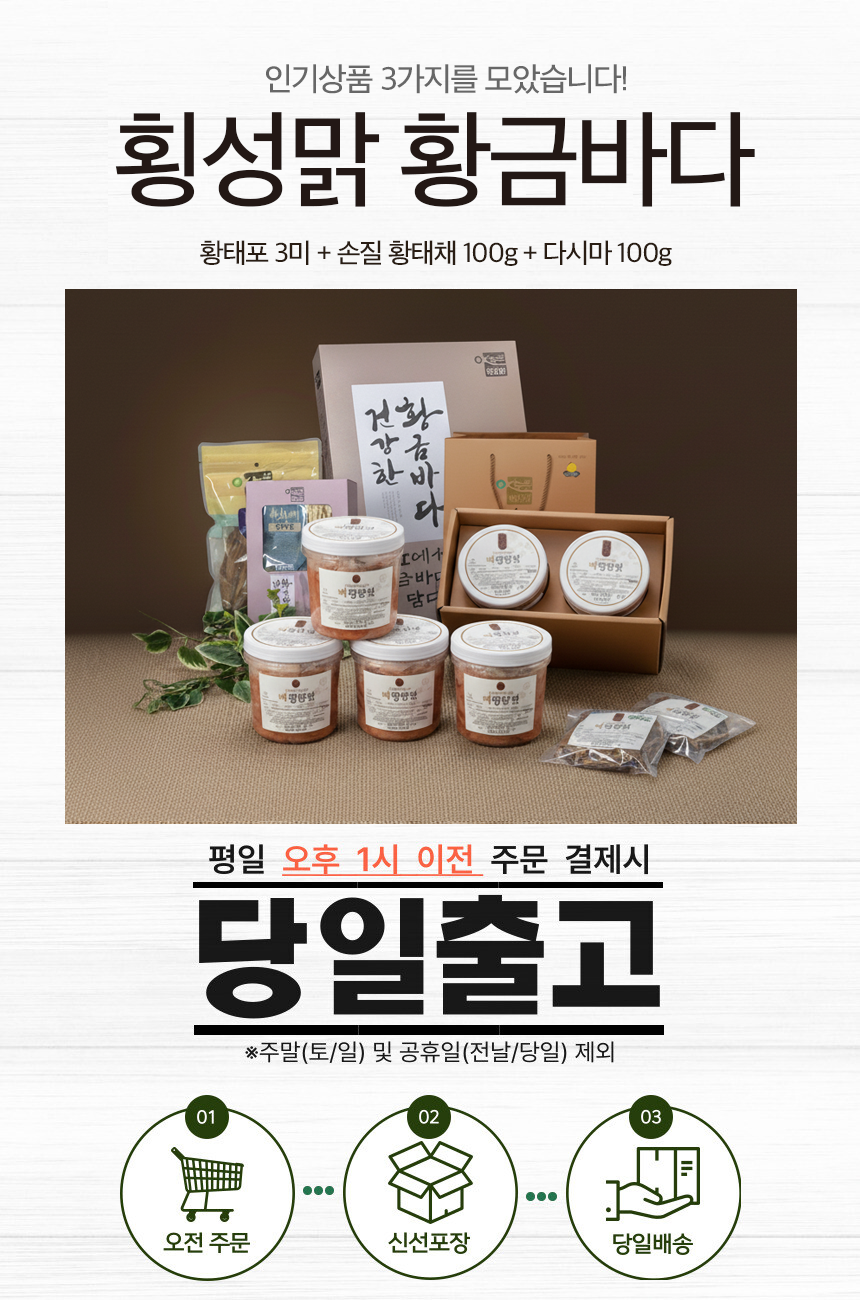 3미(40~42cm), 황태채 100g, 다시마 100g |