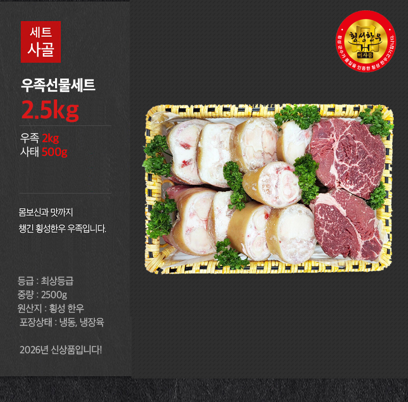 [명절 특가] 횡성한우 우족선물세트 2.5kg, 우족+사태