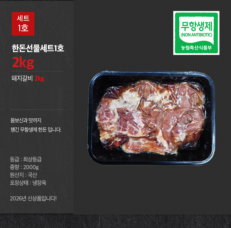 한돈 선물세트 1호 2kg, 무항생제 돼지갈비 |