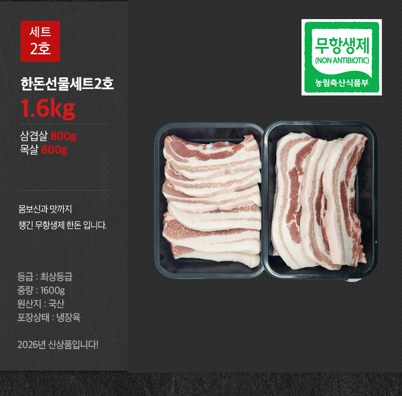 | [명절 특가] 한돈 선물세트 2호 1.6kg, 삼겹살 & 목살 |