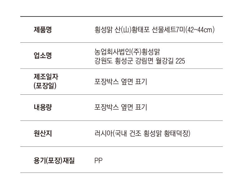 횡성맑 산(山)황태를