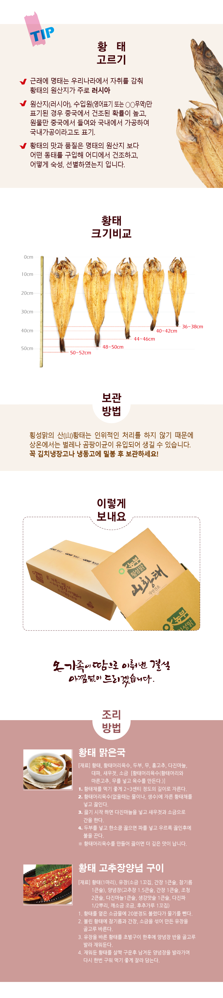 마트에서 흔히 볼 수 있는 황태와는 비교되지 않는 고품질로