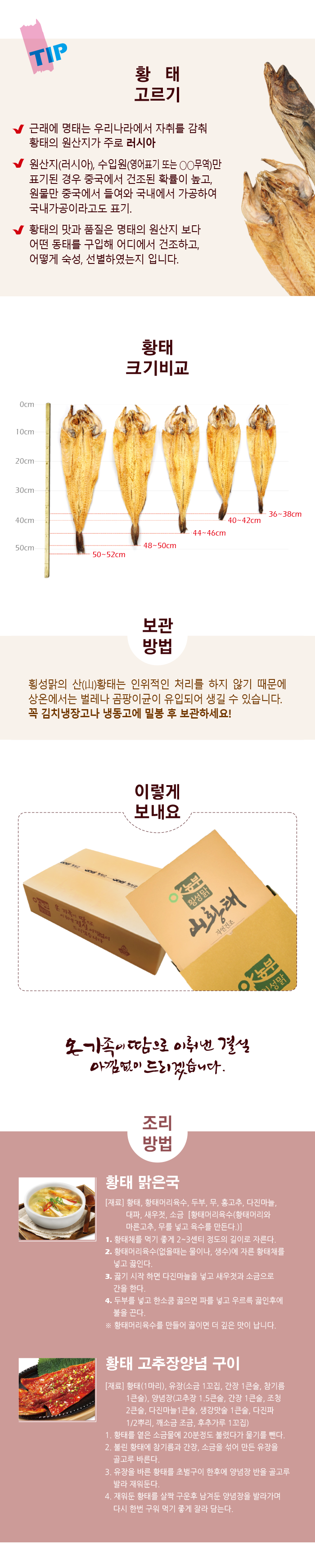 마트에서 흔히 볼 수 있는 황태와는 비교되지 않는 고품질로